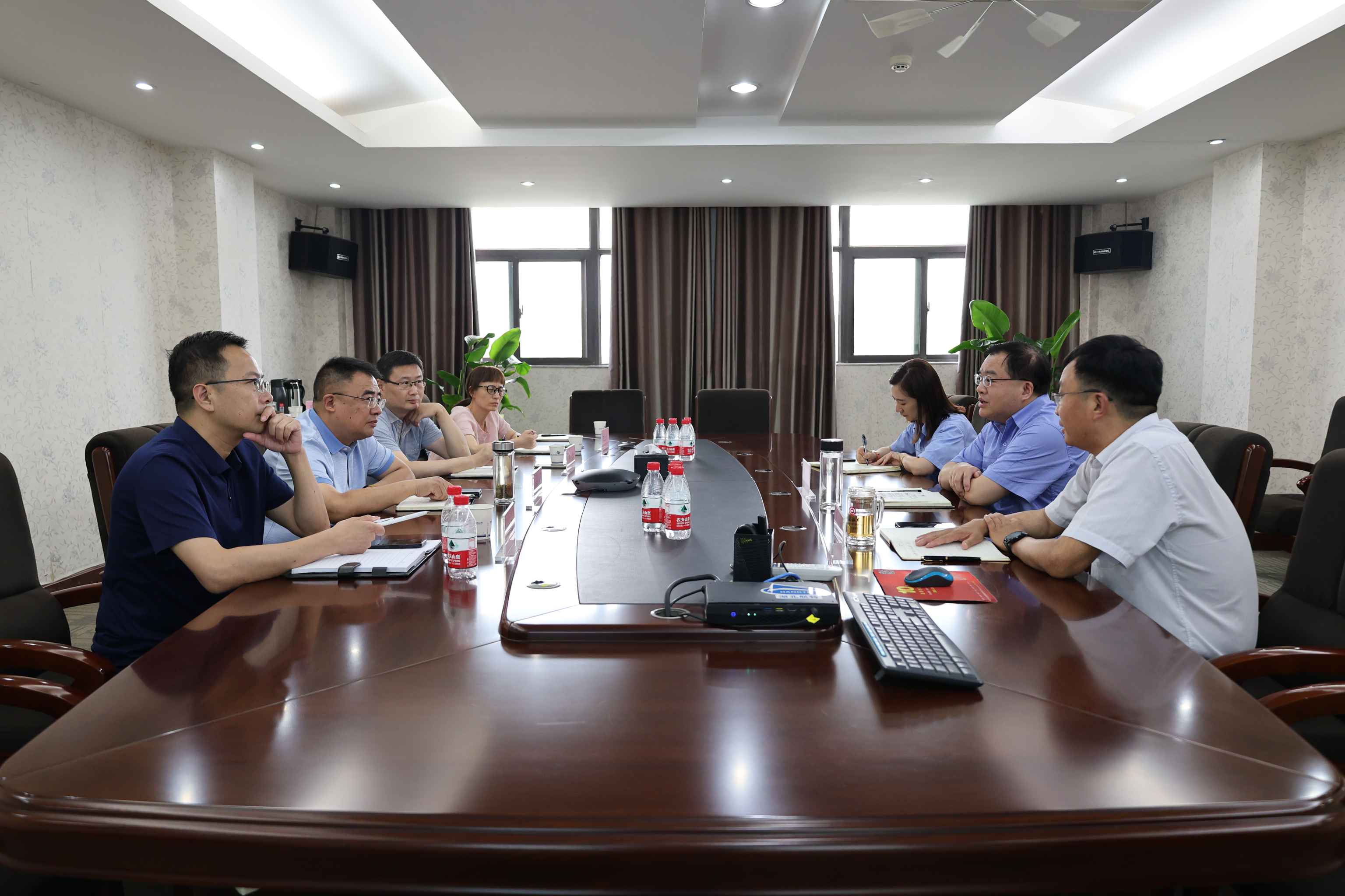 熊小平匯報了公司上半年經(jīng)營情況,各產(chǎn)業(yè)收入指標完成情況以及上市進程。陳陽陵就行業(yè)環(huán)境的變化和公司當前市場形勢進行了解讀,并對市國資委對企業(yè)發(fā)展的關心表示感謝。